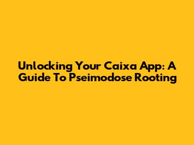 Unlocking Your Caixa App: A Guide To Pseimodose Rooting
