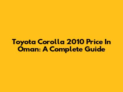 Toyota Corolla 2010 Price In Oman: A Complete Guide