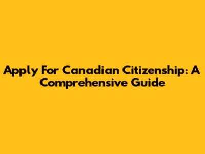 Apply For Canadian Citizenship: A Comprehensive Guide