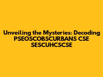 Hey guys! Ever stumble upon something that just seems like a jumble of letters? Well, that's what we're tackling today! We're diving headfirst into the world of "PSEOSCOBSCURBANS CSE SESCUHCSCSE." Now, I know, it looks like a total mouthful, and frankly, a bit of a code! But don't sweat it; we're going to break it down, understand what it might refer to, and explore some possible meanings. Think of it as a fun puzzle, a linguistic adventure, if you will. This will be a long and winding road with a lot of turns. Buckle up, buttercups; it's going to be a fun ride!