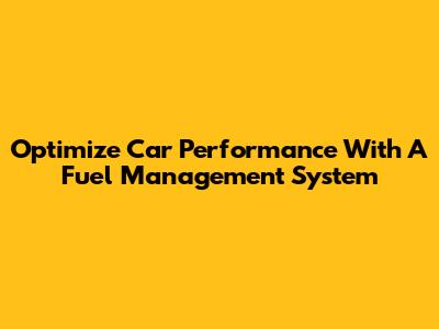 Optimize Car Performance With A Fuel Management System