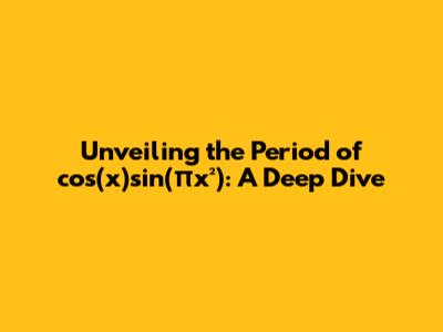 Hey guys! Ever stumbled upon the function cos(x)sin(πx²) and wondered about its period? Well, you're in the right place! Finding the period of such a function can be a bit tricky, but don't sweat it. We're going to break it down, step by step, so you can totally nail it. We will navigate through the realms of trigonometry and calculus to crack the code of cos(x)sin(πx²). Buckle up, because we're about to embark on an awesome mathematical adventure! We'll start by taking a look at the fundamentals, understanding what a period even is, and then dive into the function itself. Get ready to flex those math muscles – it's going to be a fun ride!