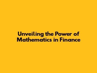 Advanced Mathematical Concepts in Finance