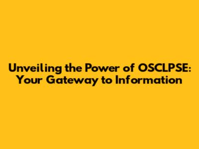 Maximizing Your Experience on OSCLPSE: A User Guide