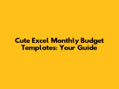 Cute Excel Monthly Budget Templates: Your Guide