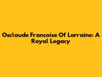 Osclaude Francoise Of Lorraine: A Royal Legacy