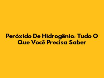 Peróxido De Hidrogênio: Tudo O Que Você Precisa Saber
